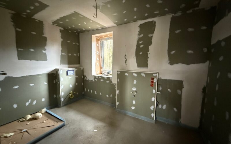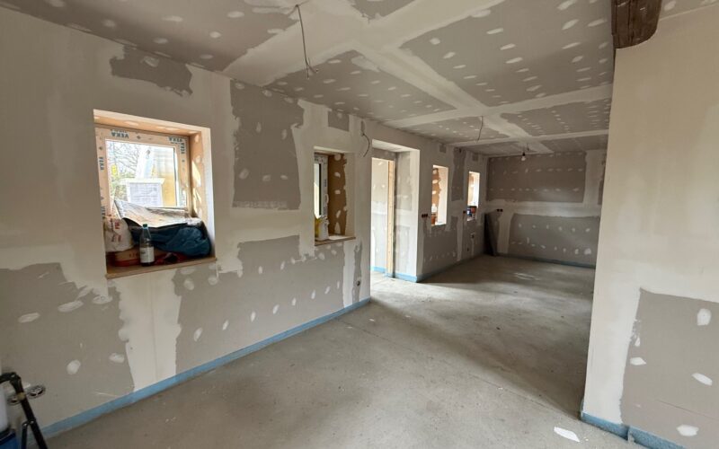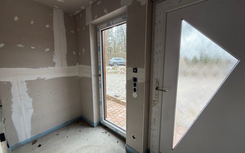 Über den einladenden Eingangsbereich mit Windfang gelangen Sie in das Haus. Hier befindet sich ausreichend Platz für einen kleinen Garderobenbereich. Von dort aus öffnet sich der Zugang in die offen gestaltete Wohnküche, die als zentraler Wohnbereich des Hauses großzügig geschnitten ist und vielfältige Einrichtungsmöglichkeiten bietet. Die Küche wird mit einer neuen Einbauküche inklusive Elektrogeräten vermietet und bildet das Herzstück des Hauses.