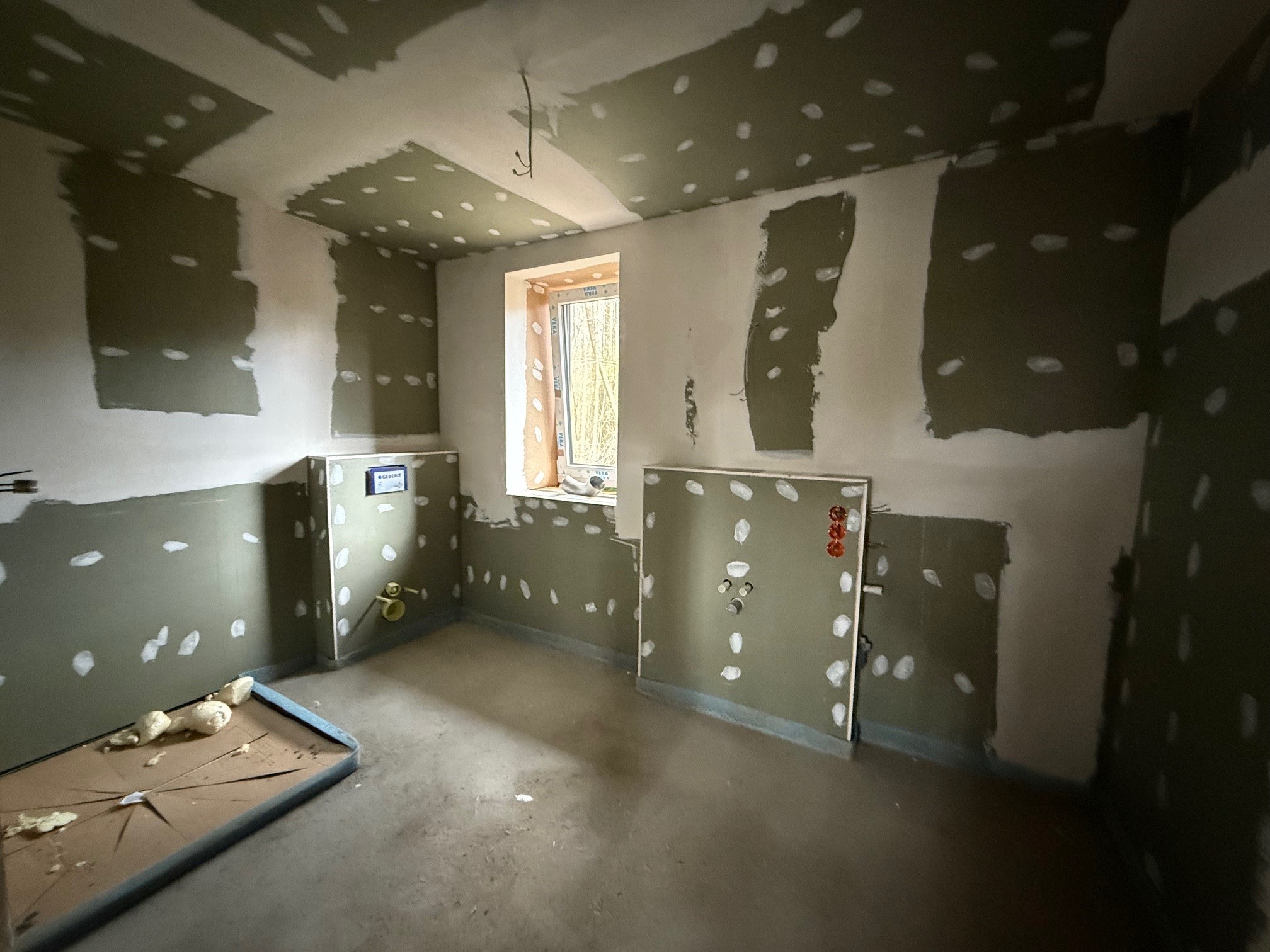 Direkt von der Wohnküche aus gelangen Sie in das moderne Badezimmer mit Dusche. Ebenfalls von hier aus erreichen Sie die Terrasse, die mit einem idyllischen Blick ins Grüne zum Verweilen und Entspannen einlädt.