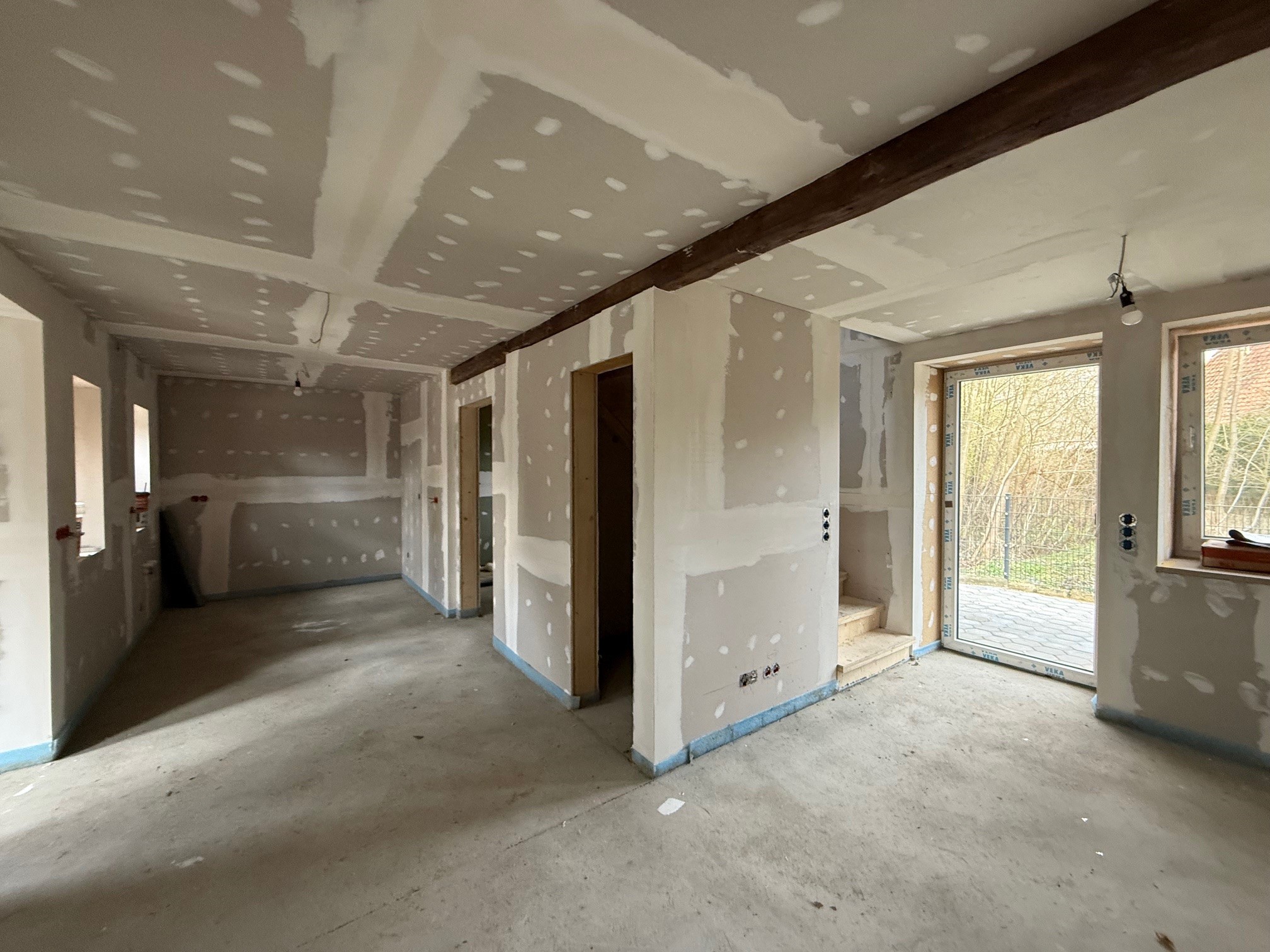 Bereits die Außenfassade macht den besonderen Charakter der Immobilie deutlich: Der klassische Fachwerkstil wird harmonisch durch moderne, hochwertige Fassadenplatten ergänzt und schafft so eine gelungene Verbindung aus Tradition und zeitgemäßer Architektur.