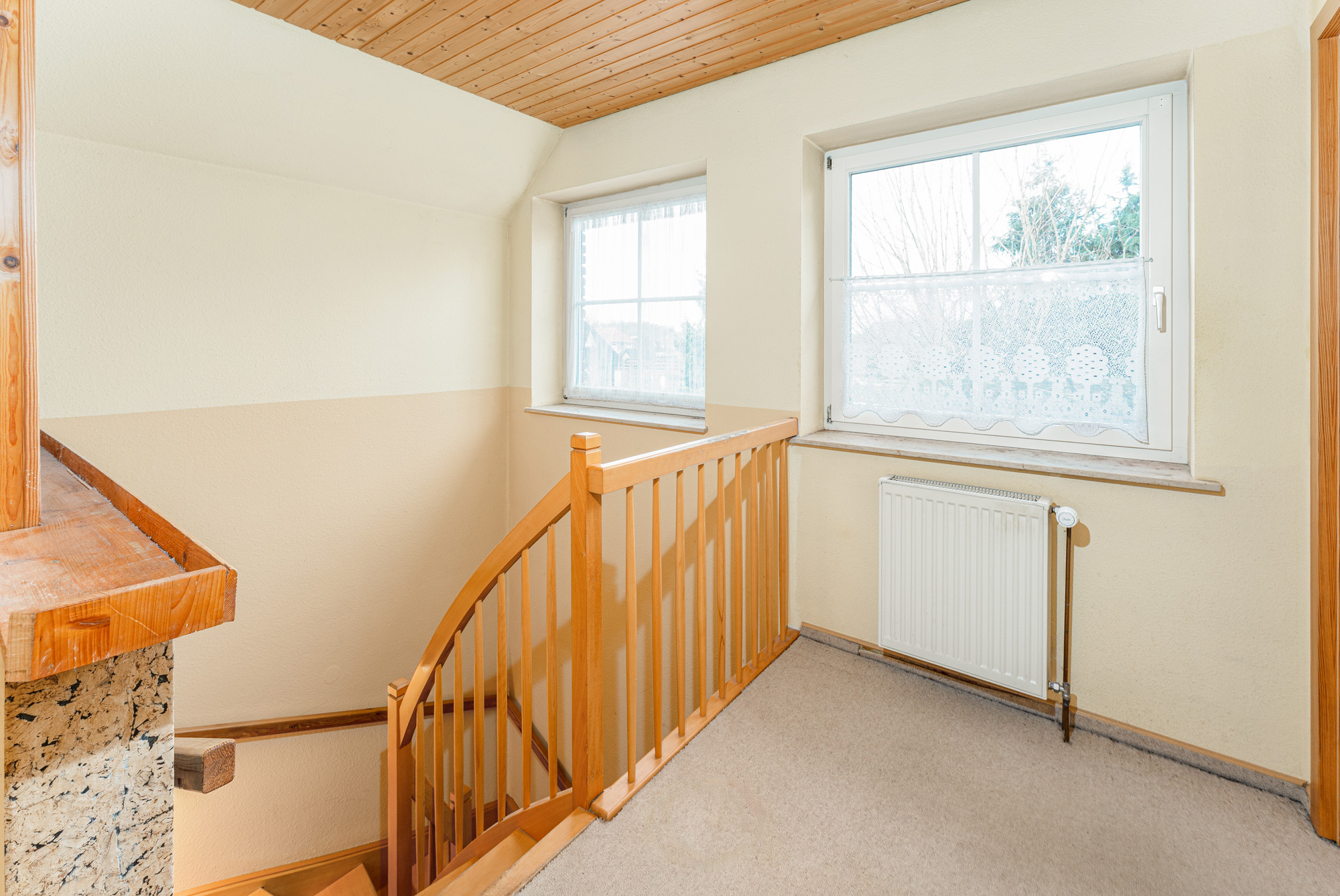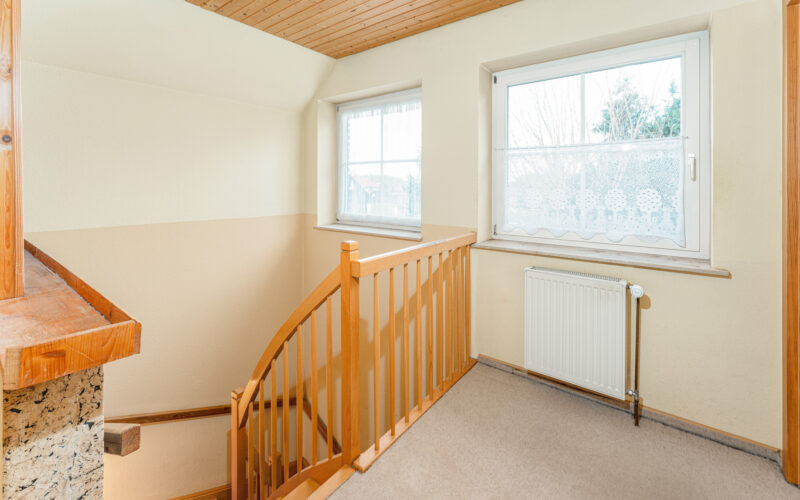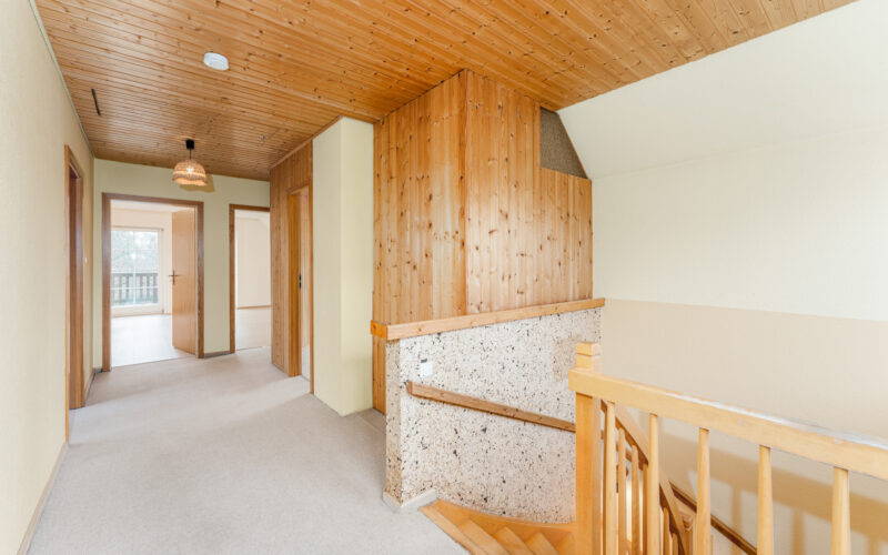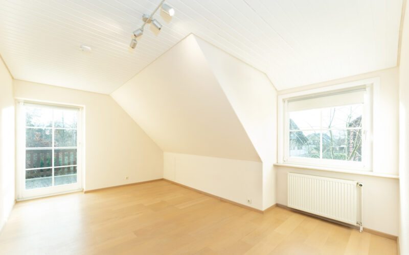 Im Dachgeschoss setzt sich das großzügige Raumgefühl fort. Dank der Dachgauben entstehen hier gerade Fensterflächen, die für viel Tageslicht sorgen und die Räume besonders gut nutzbar machen. Insgesamt stehen hier vier weitere Zimmer zur Verfügung, die individuell als Kinderzimmer, Gästezimmer, Arbeitszimmer oder Hobbyraum gestaltet werden können.